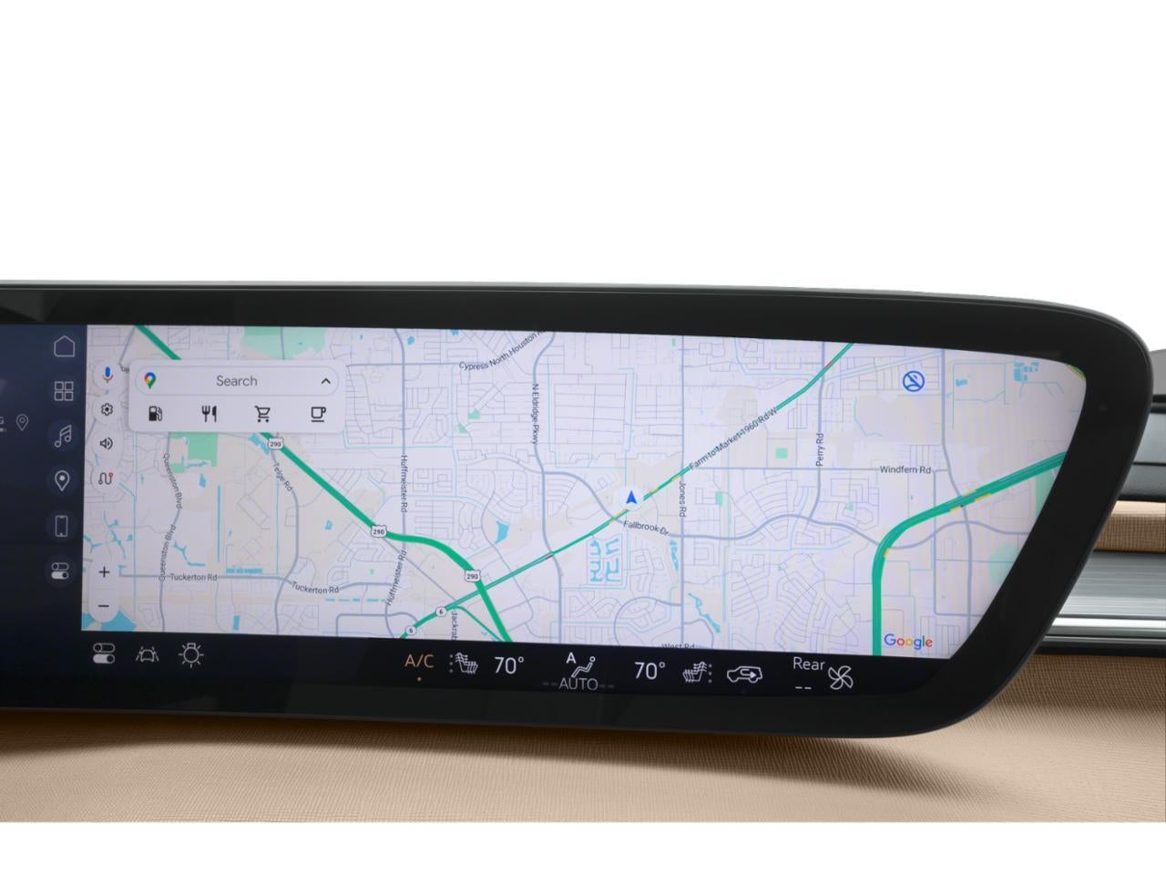 - Infotainment Center, customizable ultrawide 30" diagonal screen with Google built-in. Provides navigation capability, connected apps, personalized profiles for each driver's settings, Natural Voice Recognition and Phone Integration for Wireless Apple CarPlay/Wireless Android Auto for compatible phones