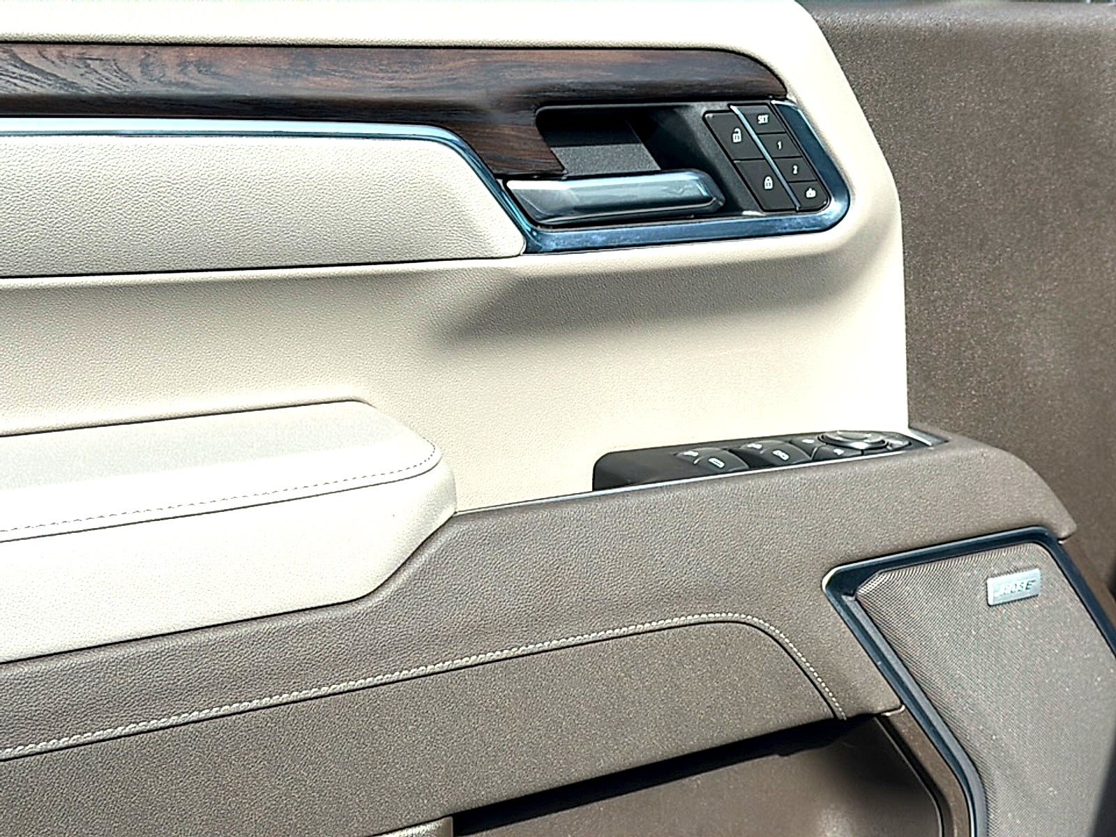 - Door panel insert: Simulated wood and metal-look door panel insert